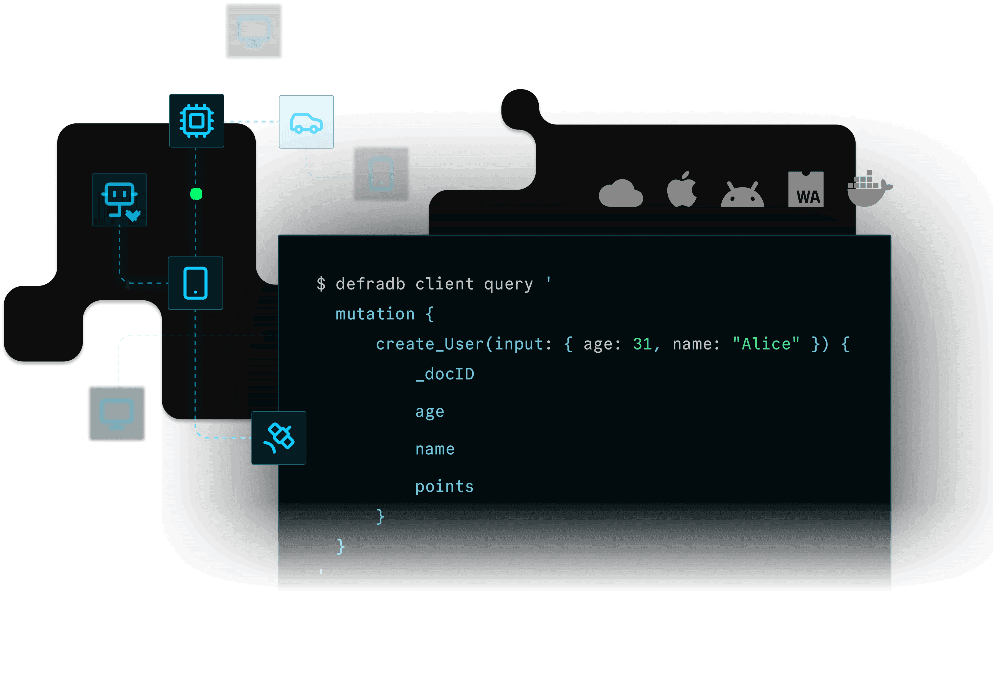 Whether you're building smart city infrastructure, autonomous systems, Edge AI, or the next generation of mobile apps, DefraDB handles the complexities of conflict resolution, data consistency, cryptographic verification, and peer-to-peer (p2p) synchronization while you focus on building software that removes boundaries.